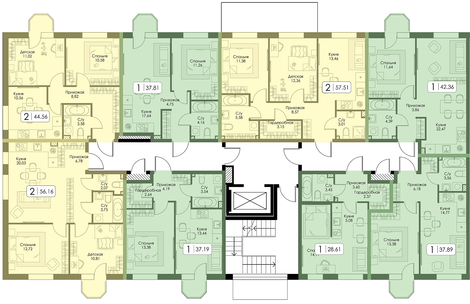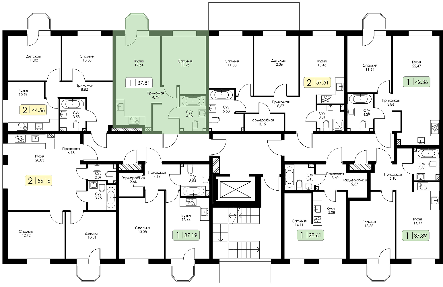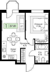 Однокомнатная квартира №145 с предчистовой отделкой, Корпус № 1.1, Секция 5
