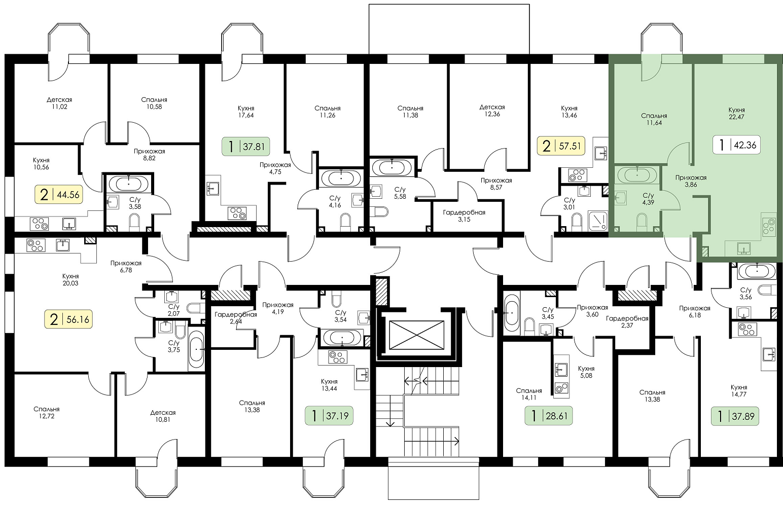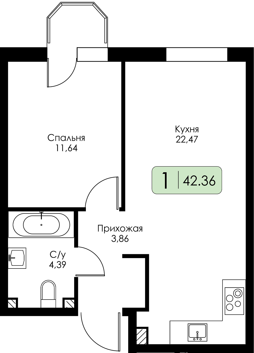 Однокомнатная квартира №147 с предчистовой отделкой, Корпус № 1.1, Секция 5