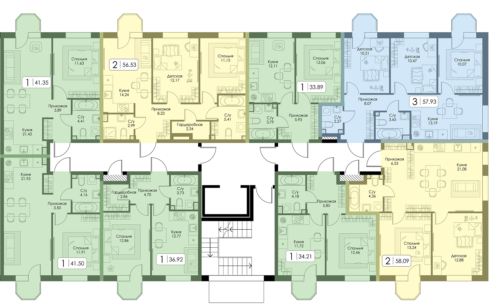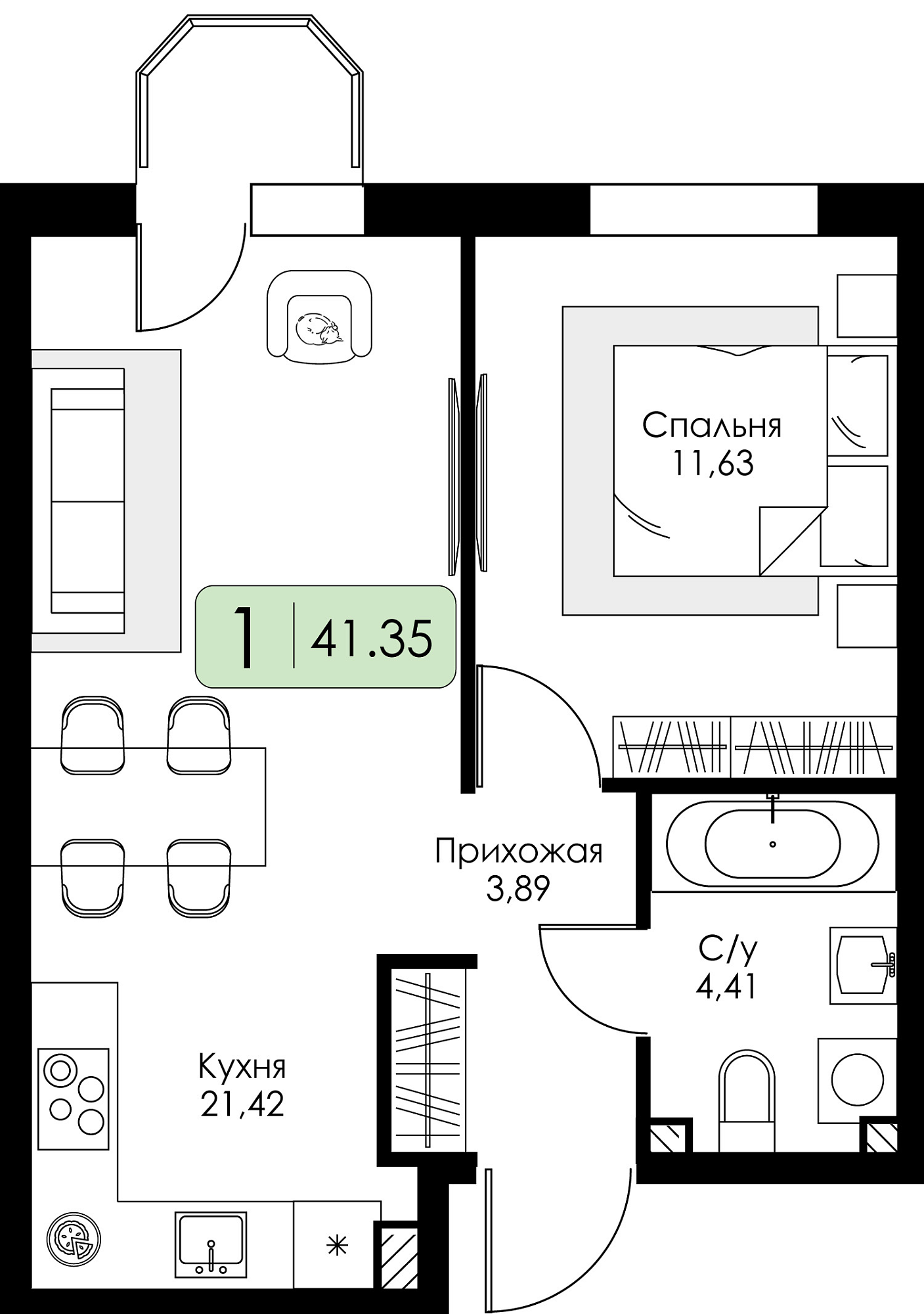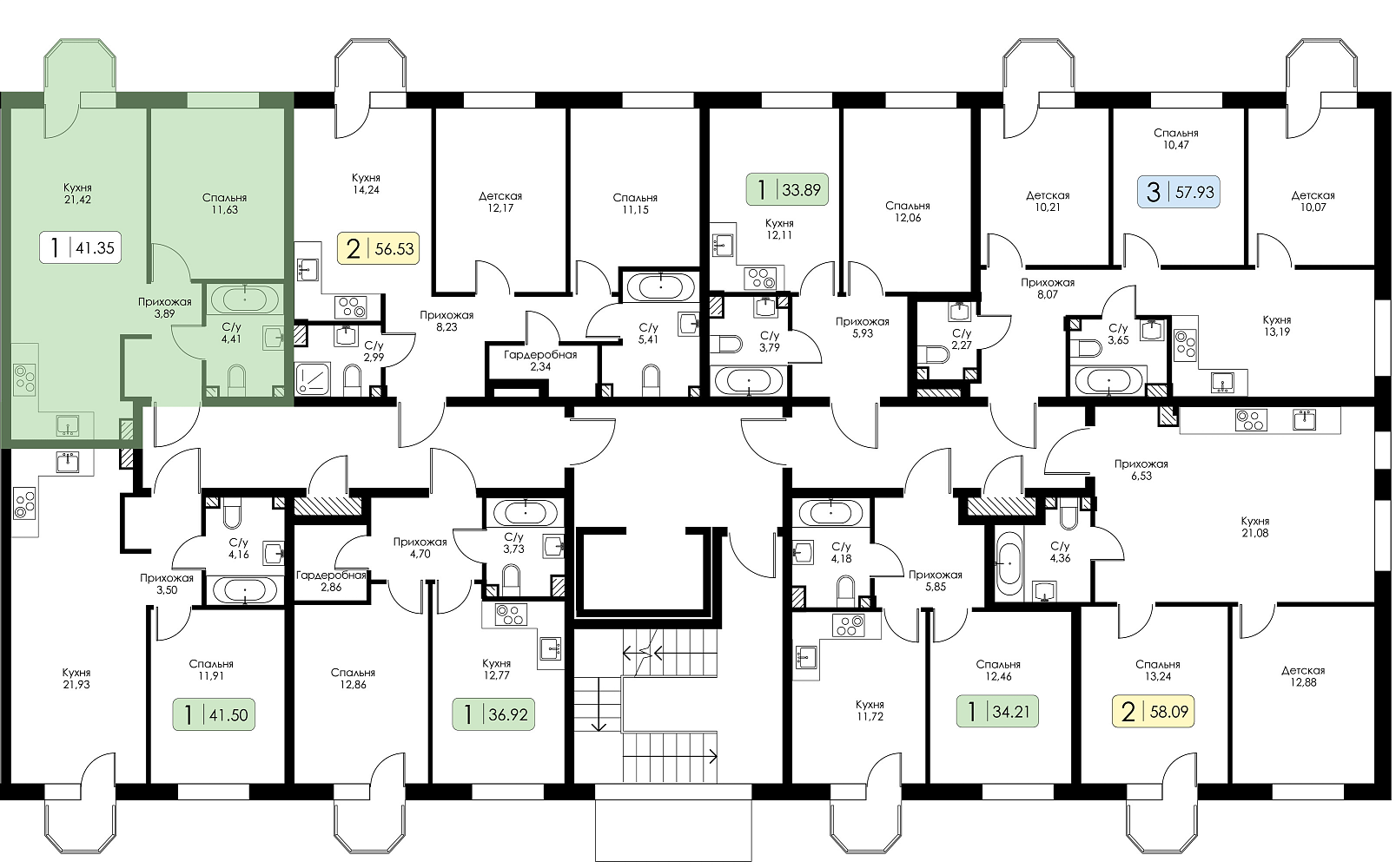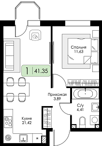 Однокомнатная квартира №167 с предчистовой отделкой, Корпус № 1.1, Секция 6