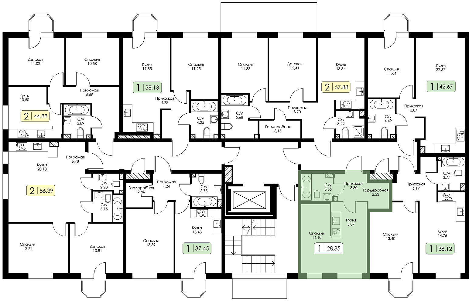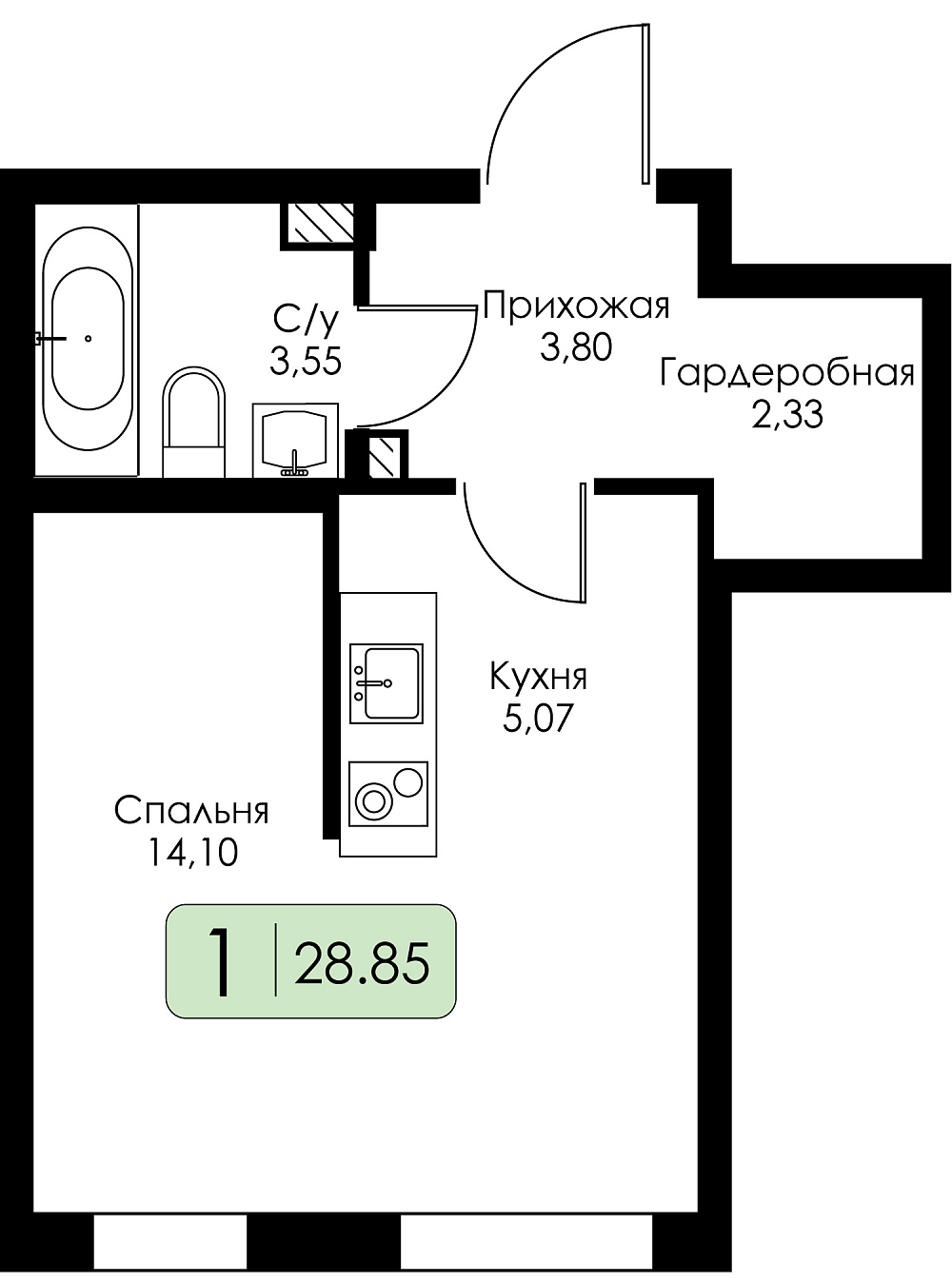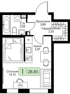 Квартира-студия №133 с предчистовой отделкой, Корпус № 1.1, Секция 5