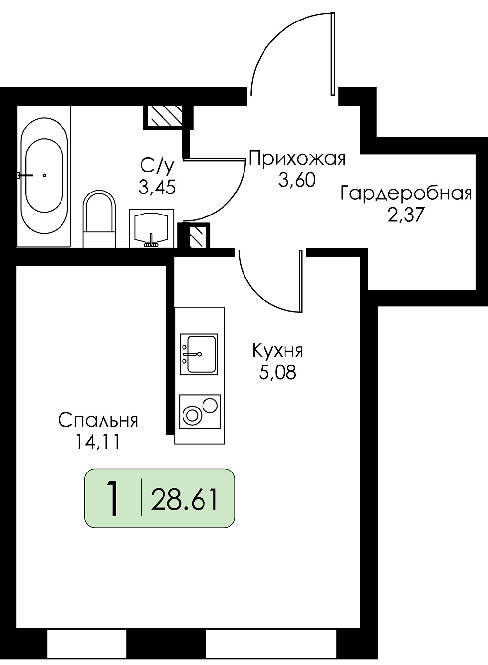 Квартира-студия №149 с предчистовой отделкой, Корпус № 1.1, Секция 5