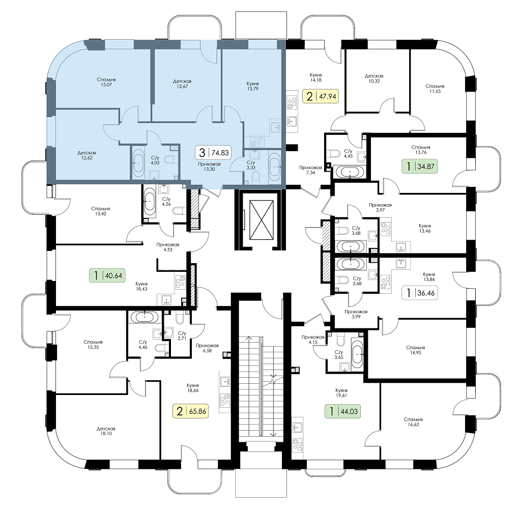 Трехкомнатная квартира №21 с предчистовой отделкой, Корпус № 1.1, Секция 1