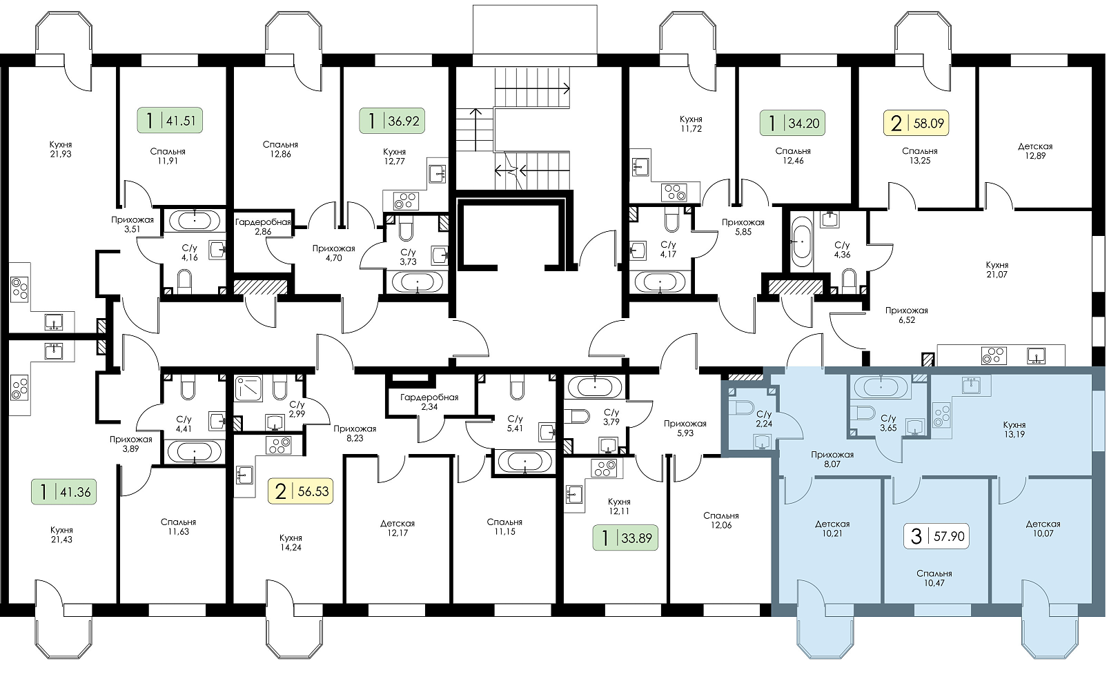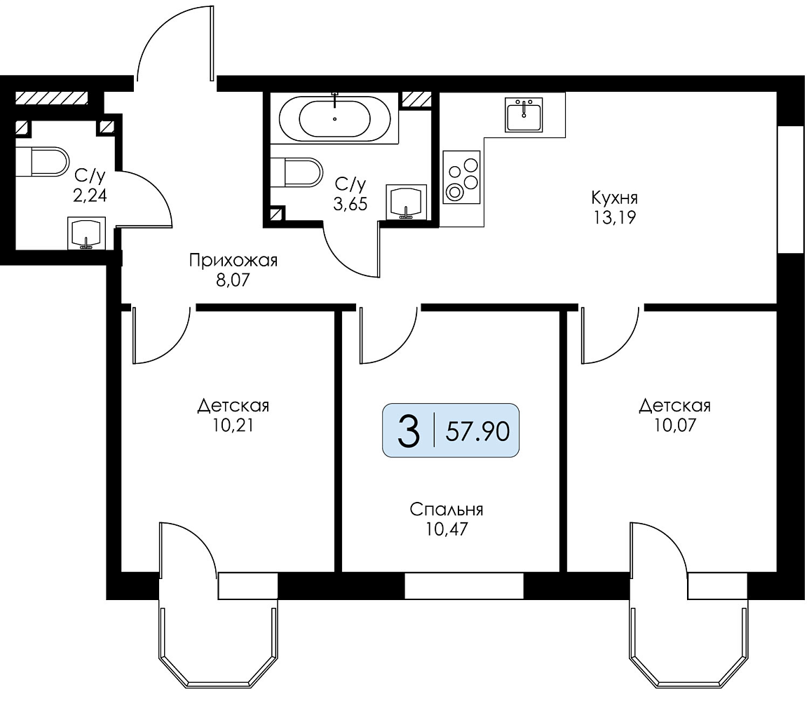 Трехкомнатная квартира №77 с предчистовой отделкой, Корпус № 1.1, Секция 3