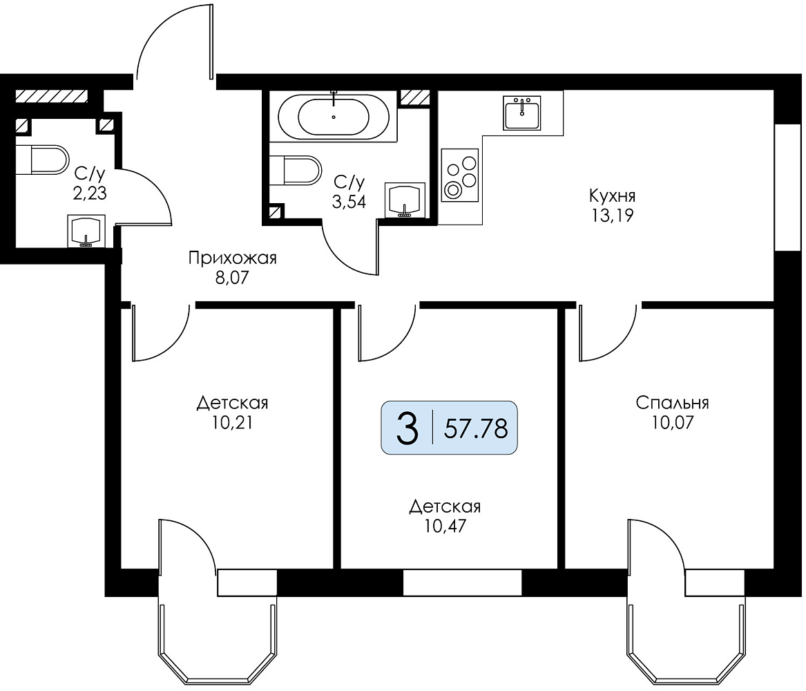 Трехкомнатная квартира №85 с предчистовой отделкой, Корпус № 1.1, Секция 3
