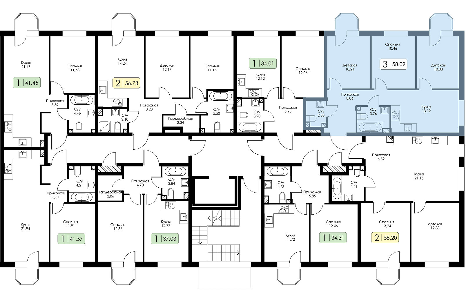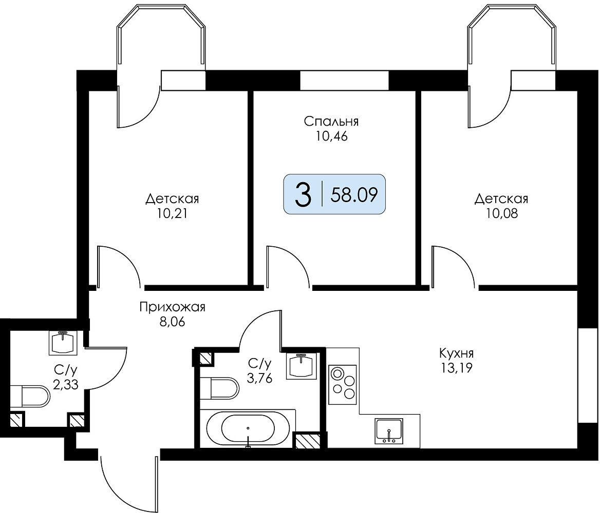 Трехкомнатная квартира №162 с предчистовой отделкой, Корпус № 1.1, Секция 6