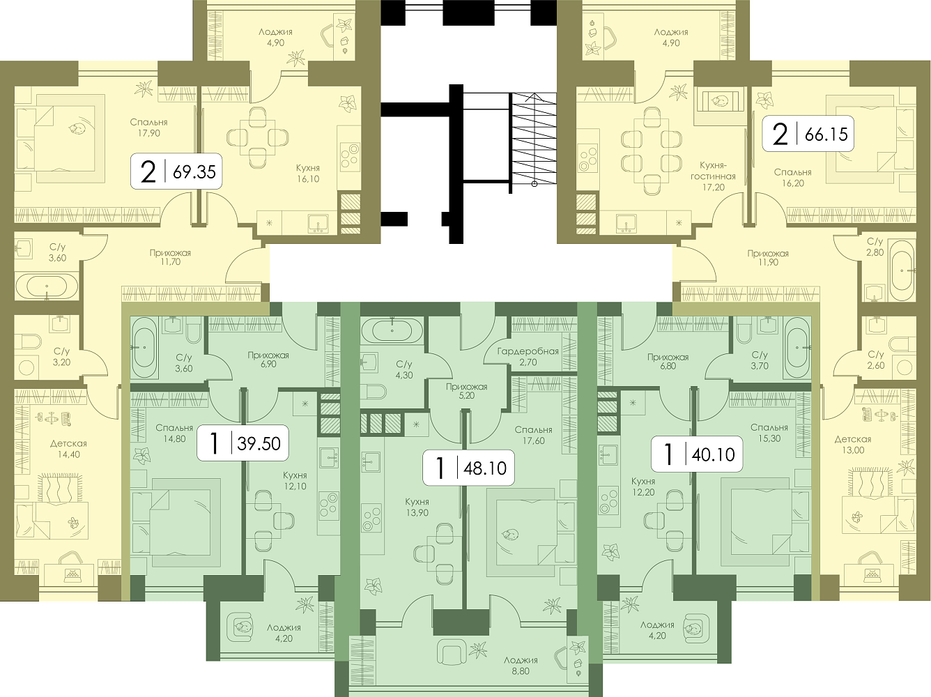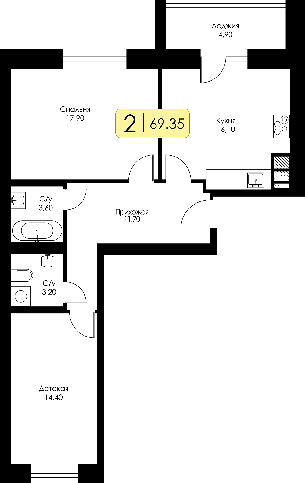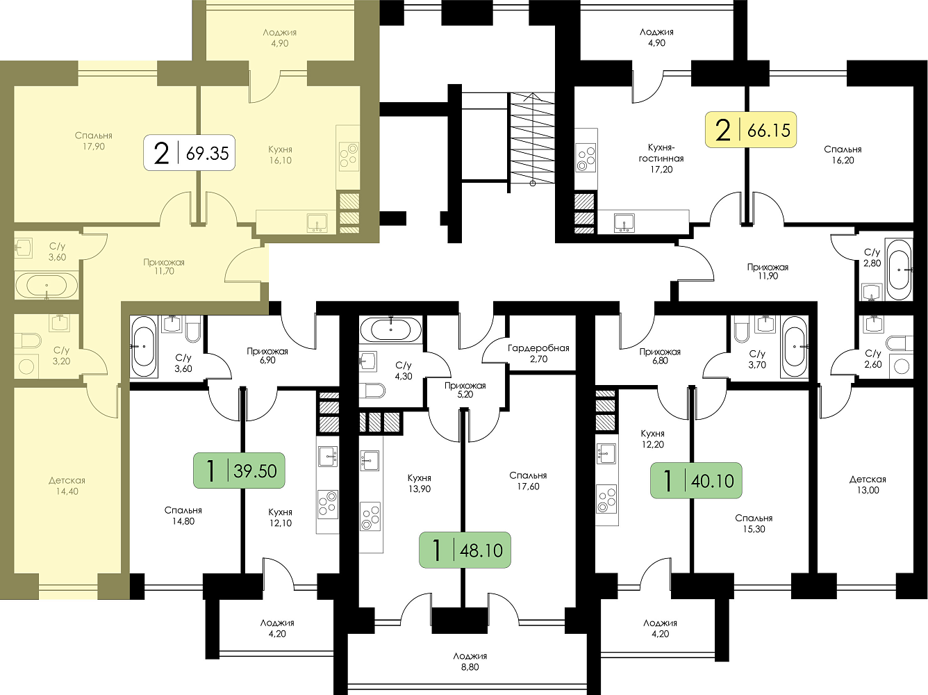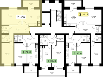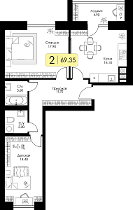 Двухкомнатная квартира №65 c черновой отделкой, Корпус дом №5, Секция 2