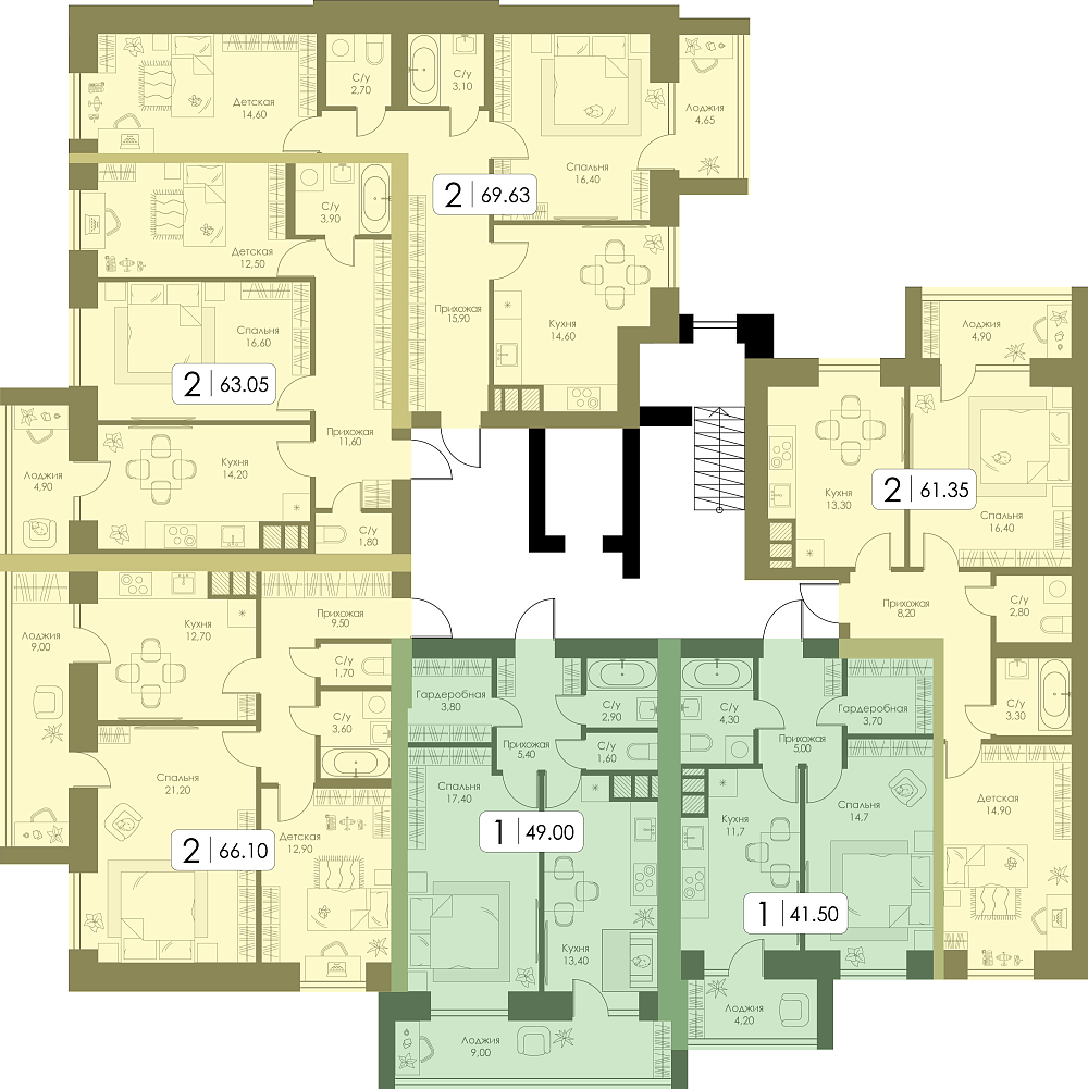 Двухкомнатная квартира №149 c черновой отделкой, Корпус дом №5, Секция 3