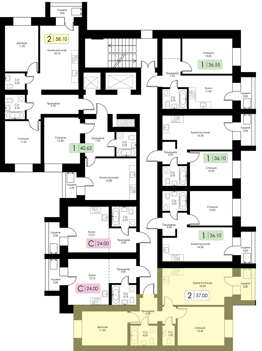 Двухкомнатная квартира №85 с чистовой отделкой, Корпус дом №10, Секция 2