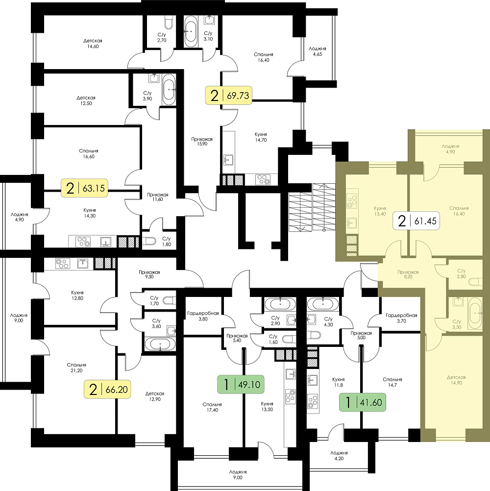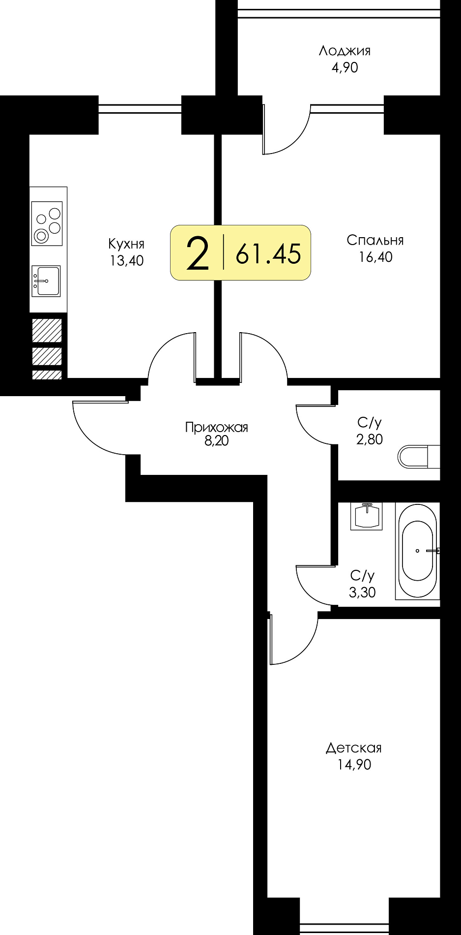 Двухкомнатная квартира №137 c черновой отделкой, Корпус дом №5, Секция 3
