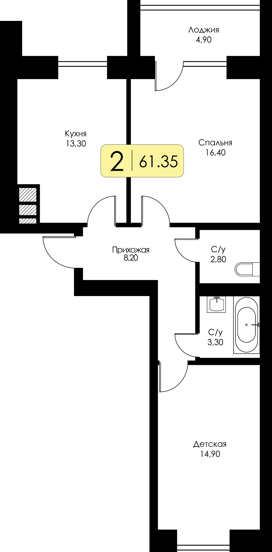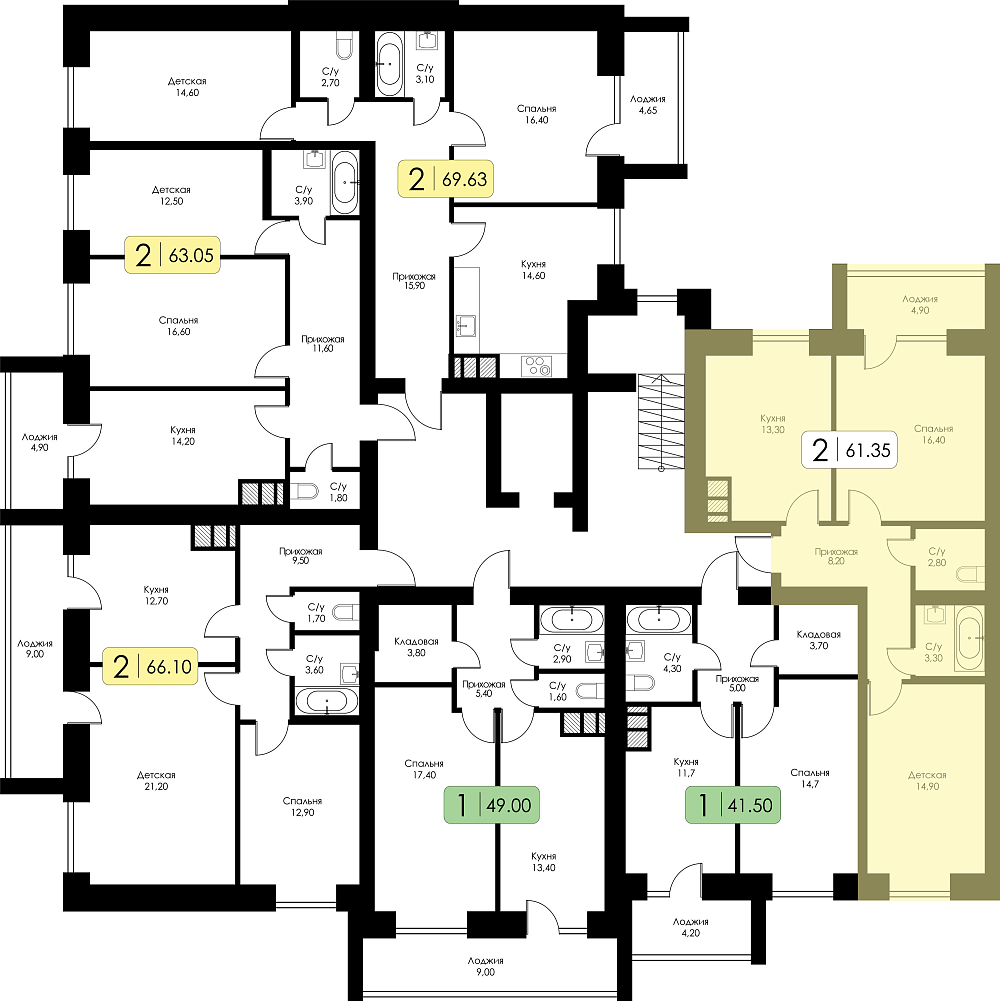 Двухкомнатная квартира №149 c черновой отделкой, Корпус дом №5, Секция 3