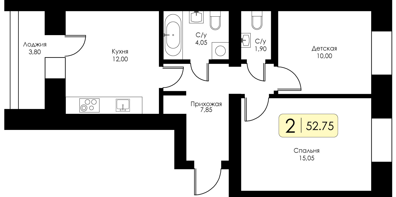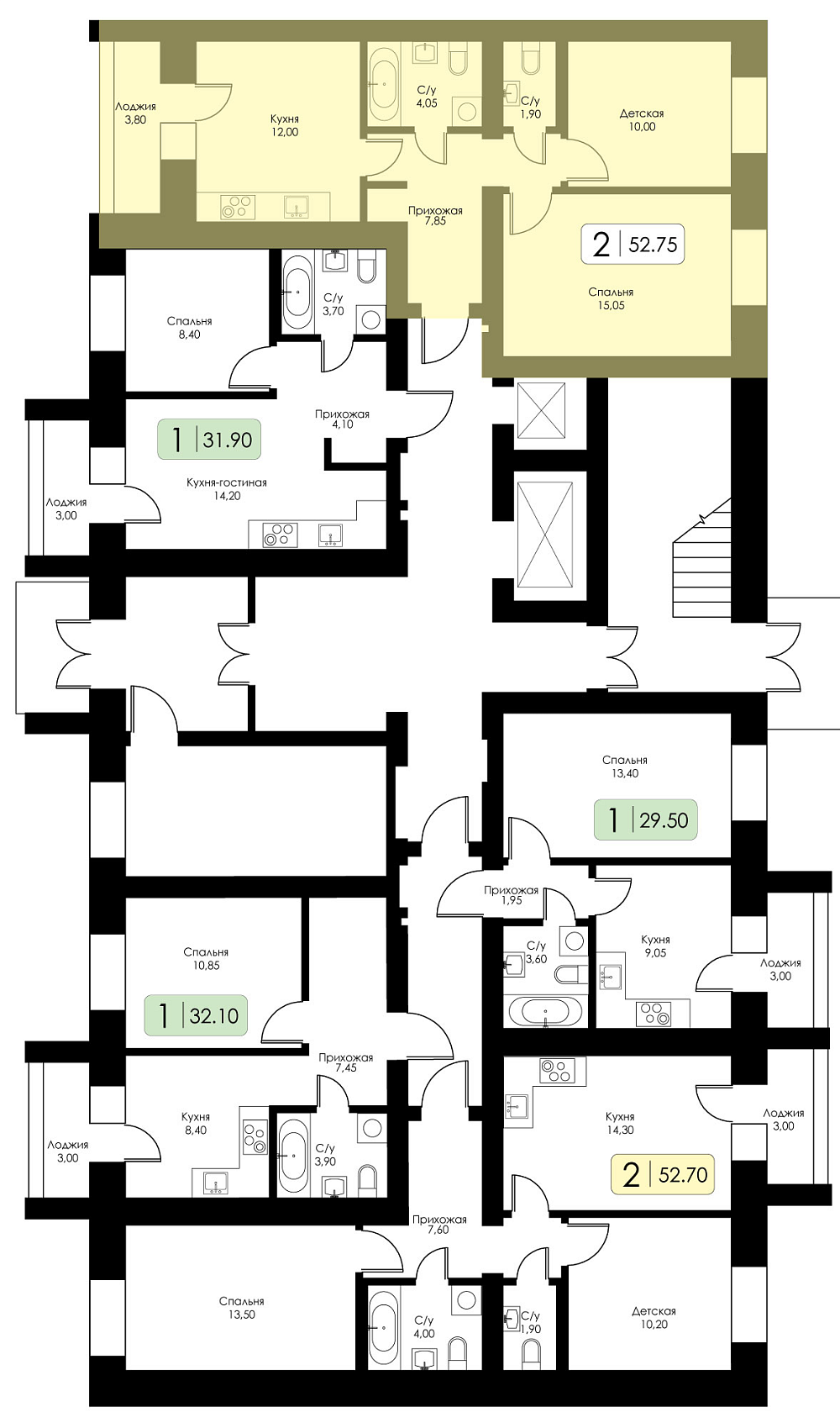 Двухкомнатная квартира №156 с чистовой отделкой, Корпус дом №10, Секция 3