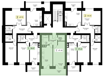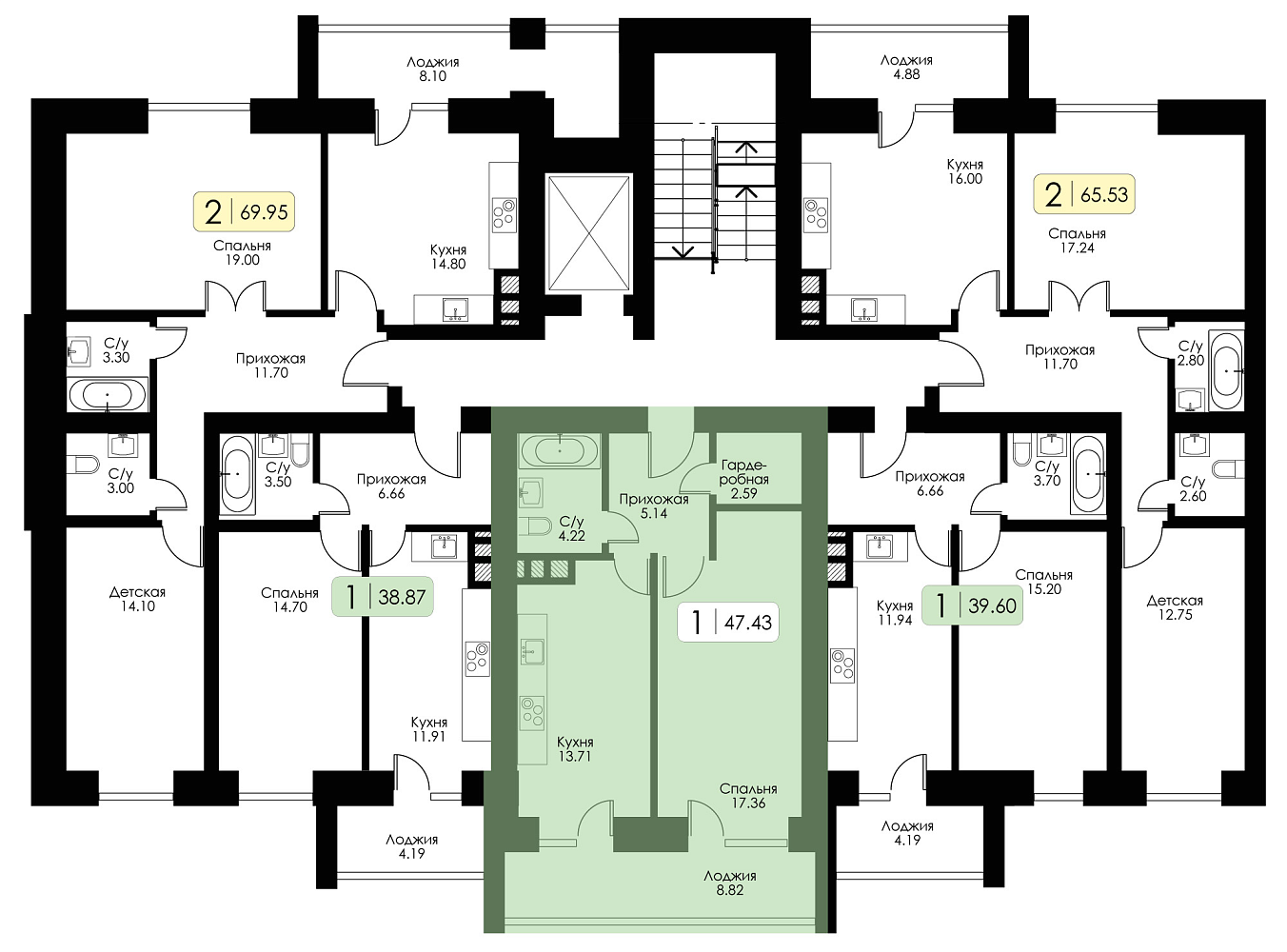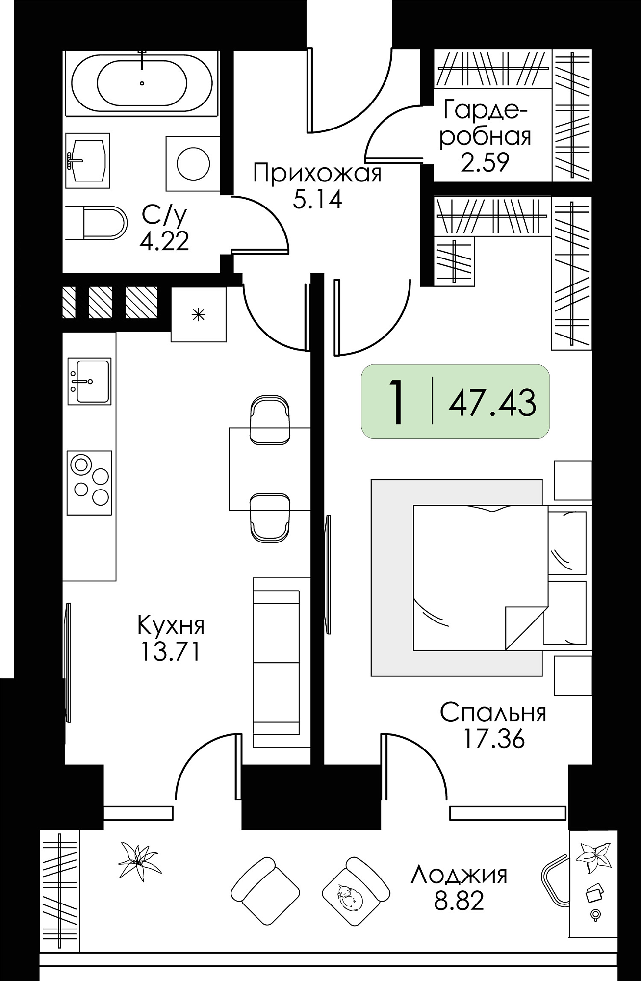 Однокомнатная квартира №78 c черновой отделкой, Корпус дом №7, Секция 2