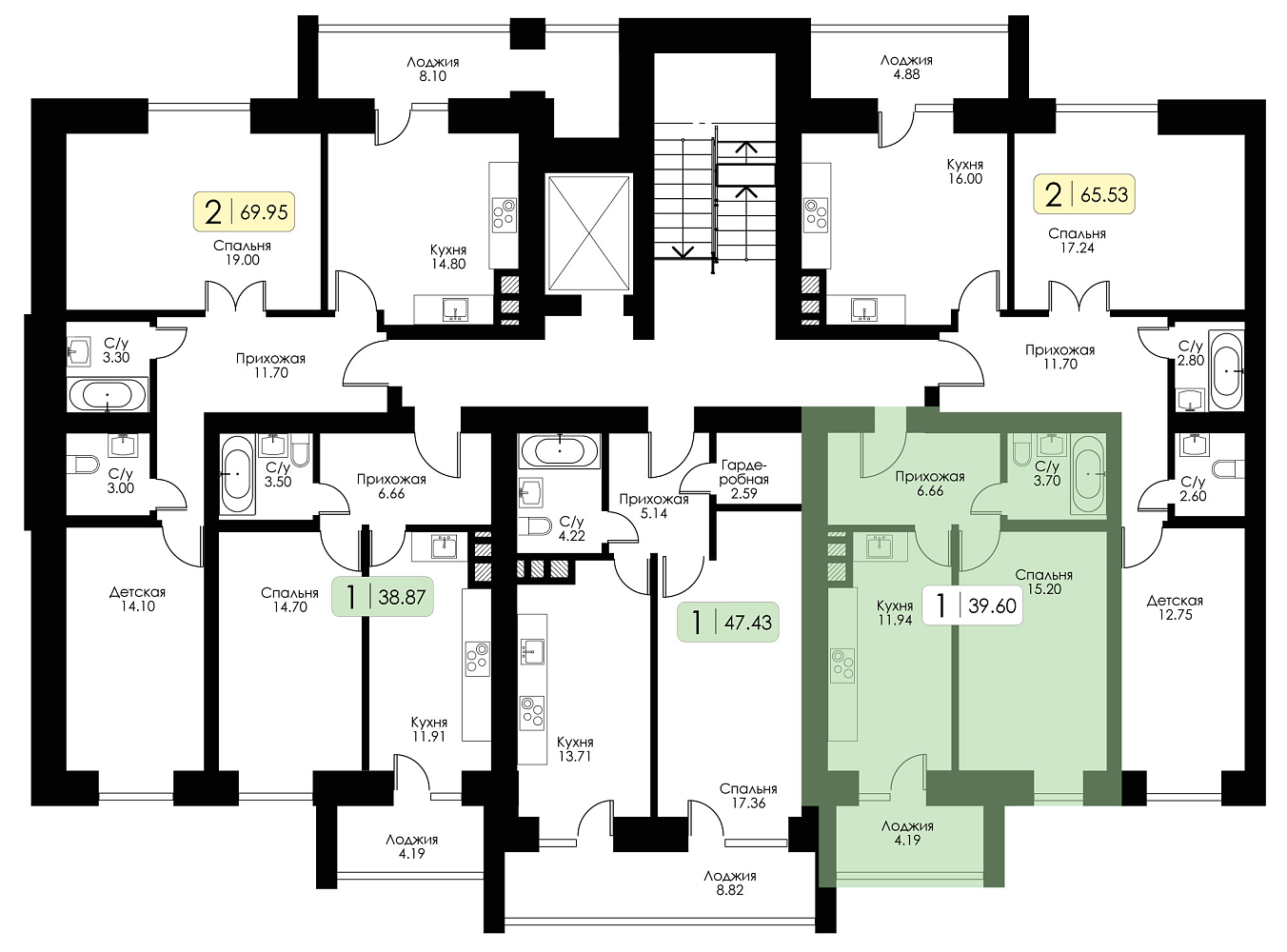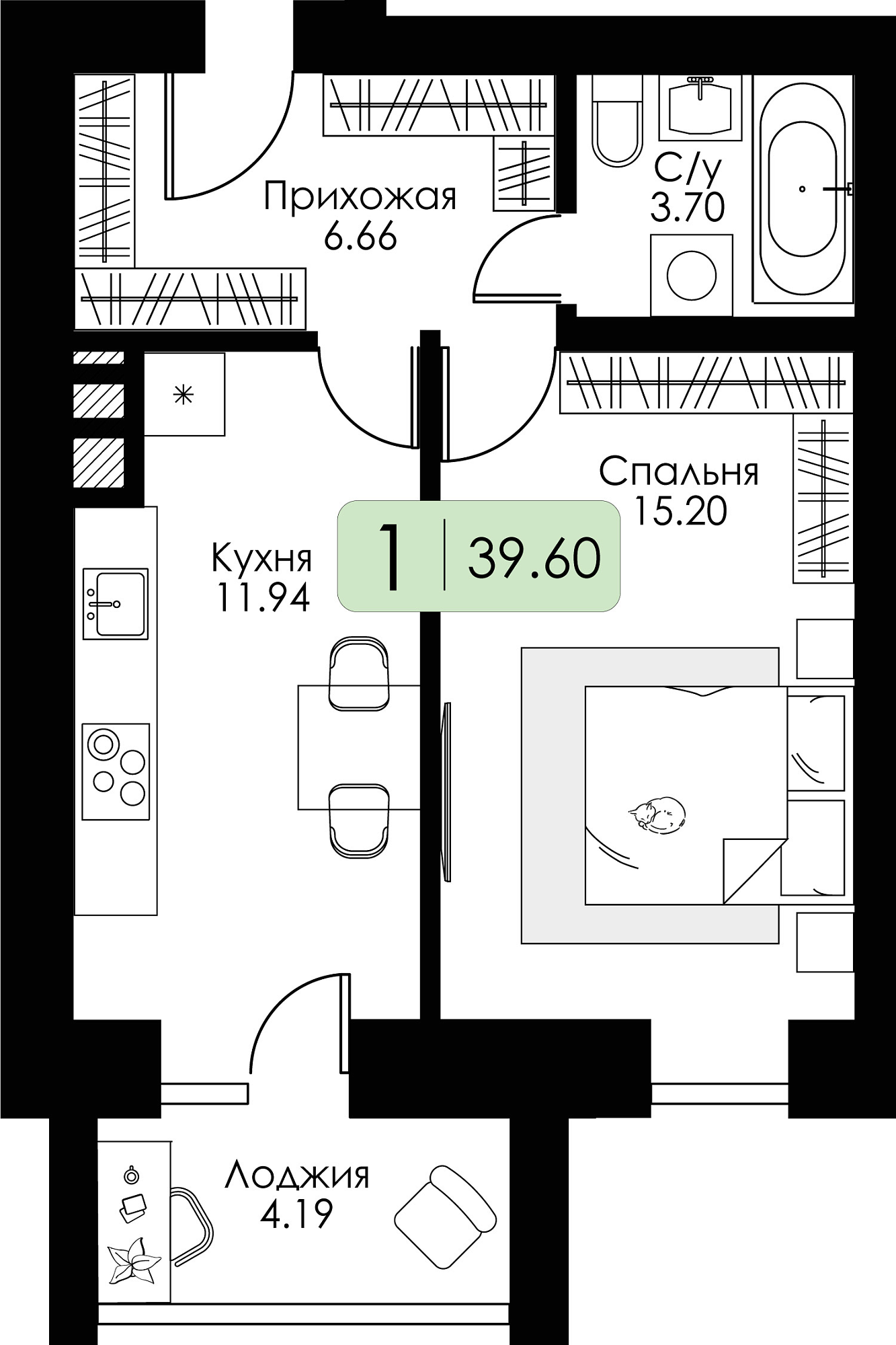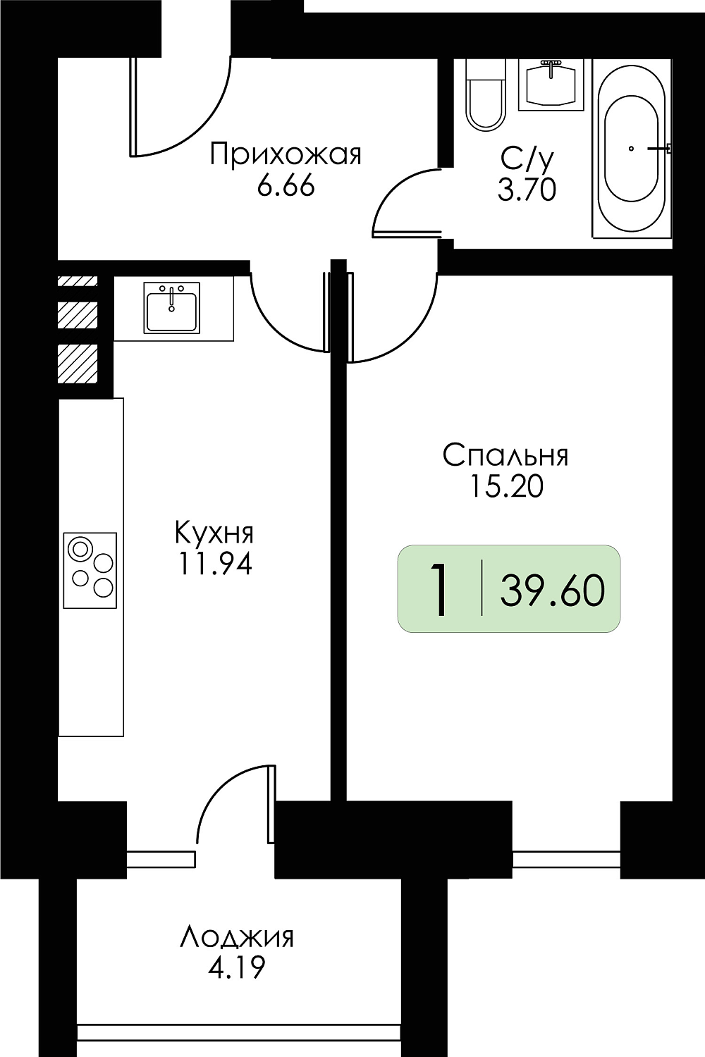 Однокомнатная квартира №137 c черновой отделкой, Корпус дом №7, Секция 3
