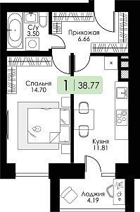 Однокомнатная квартира №154 c черновой отделкой, Корпус дом №7, Секция 3