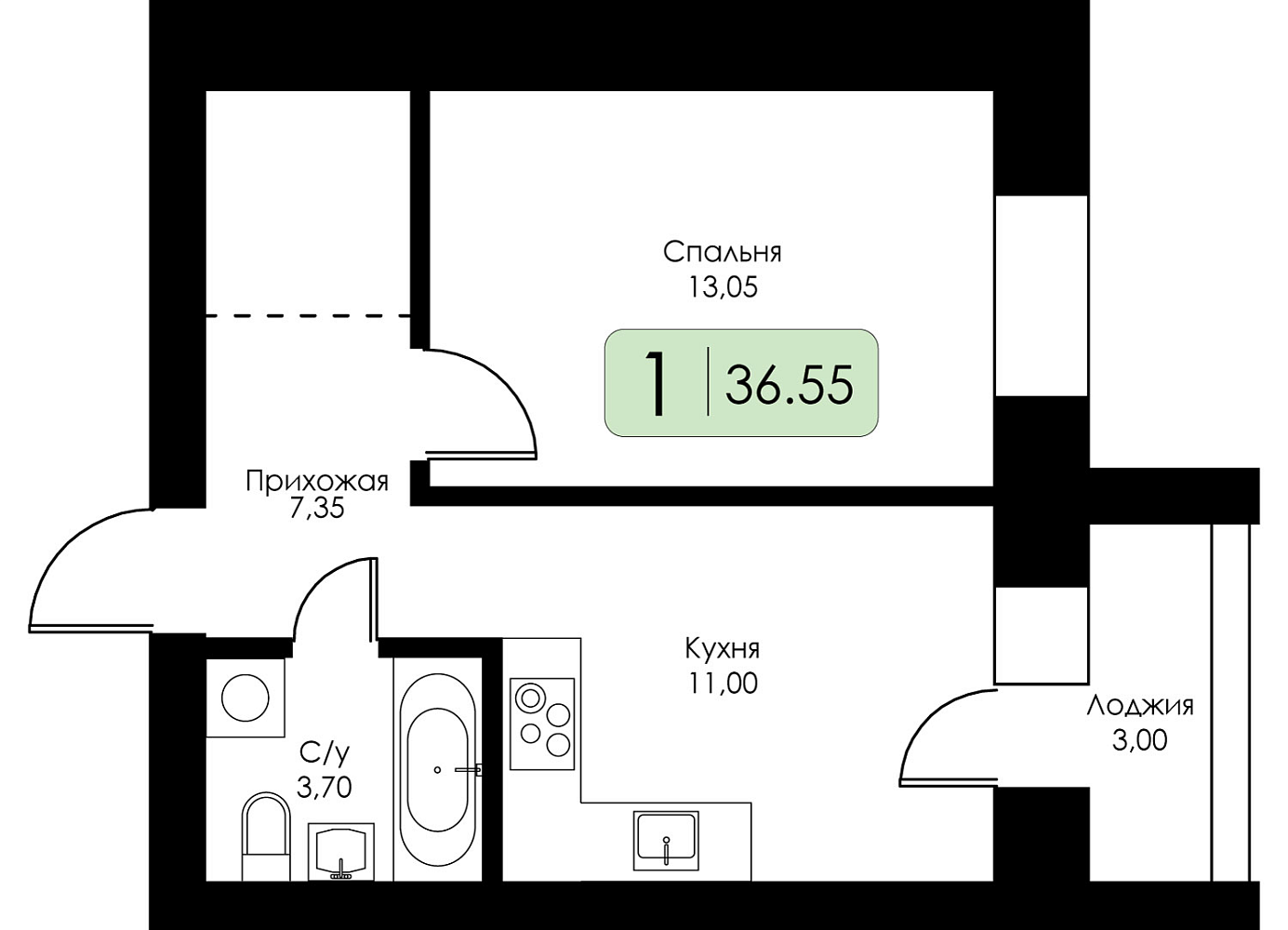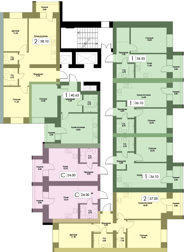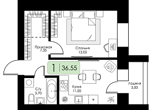 Однокомнатная квартира №58 с предчистовой отделкой, Корпус дом №10, Секция 2