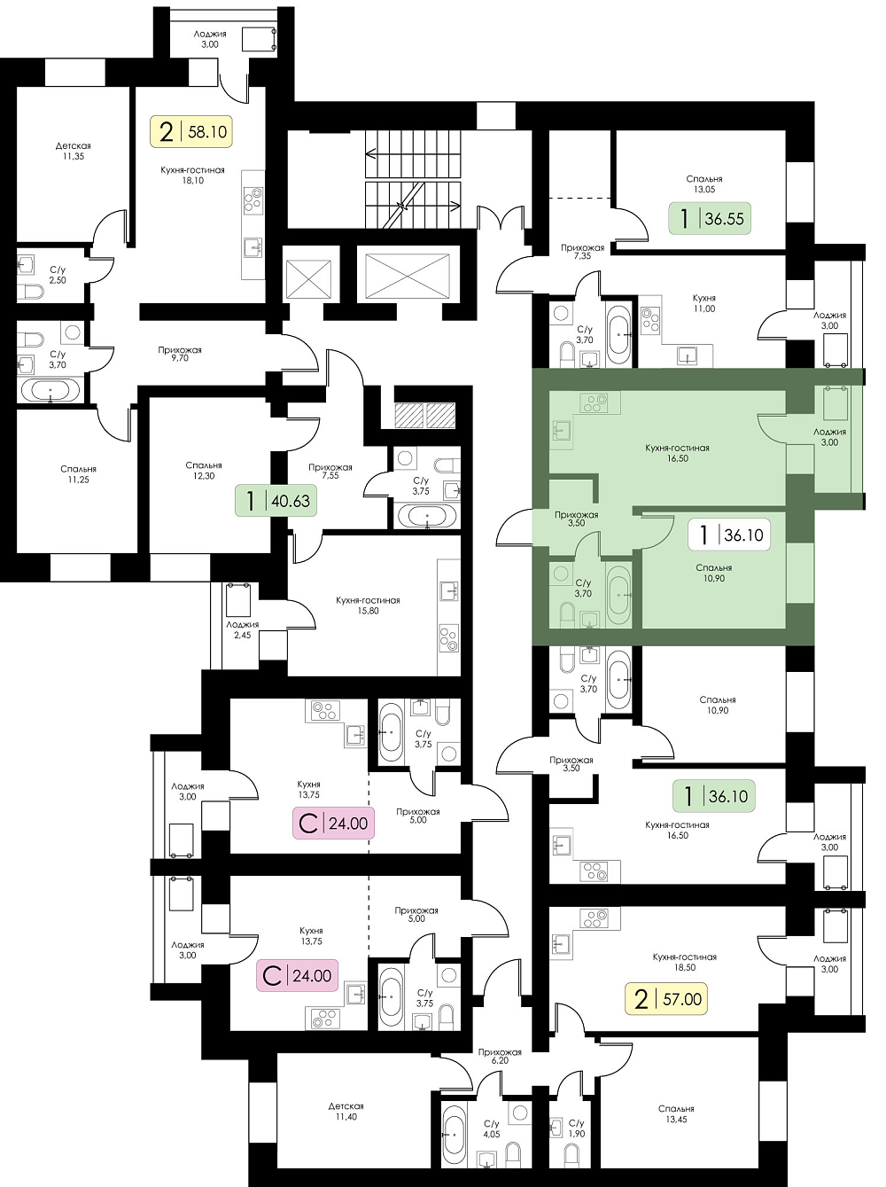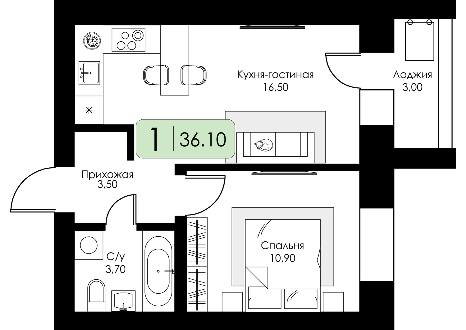 Однокомнатная квартира №83 с чистовой отделкой, Корпус дом №10, Секция 2