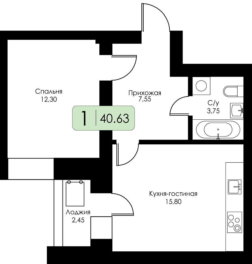 Однокомнатная квартира №88 с чистовой отделкой, Корпус дом №10, Секция 2