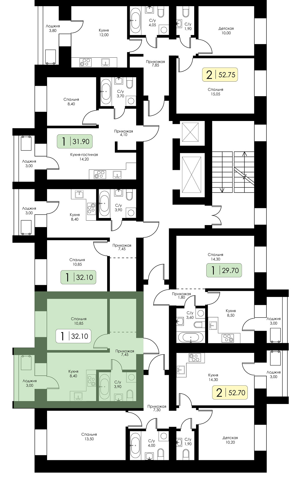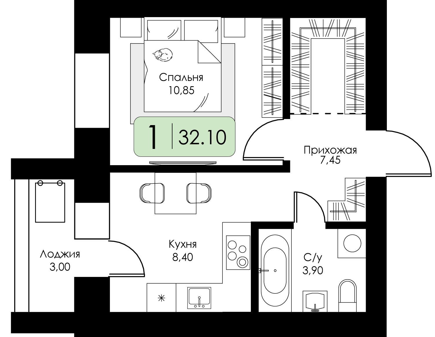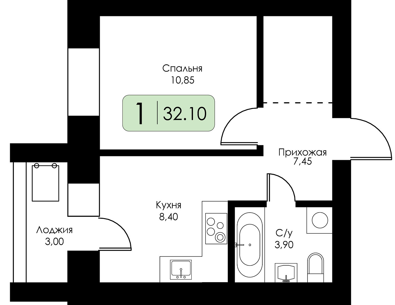 Однокомнатная квартира №153 с чистовой отделкой, Корпус дом №10, Секция 3