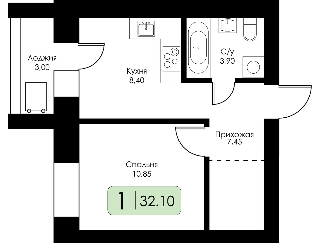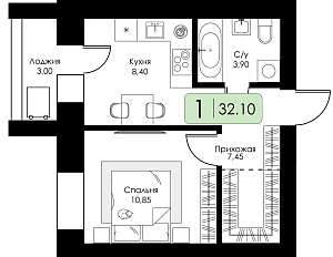 Однокомнатная квартира №154 с чистовой отделкой, Корпус дом №10, Секция 3