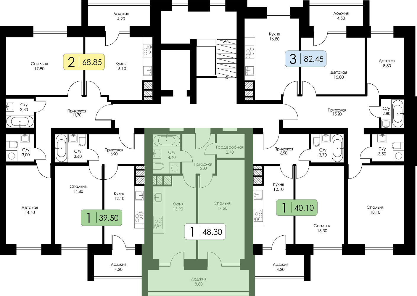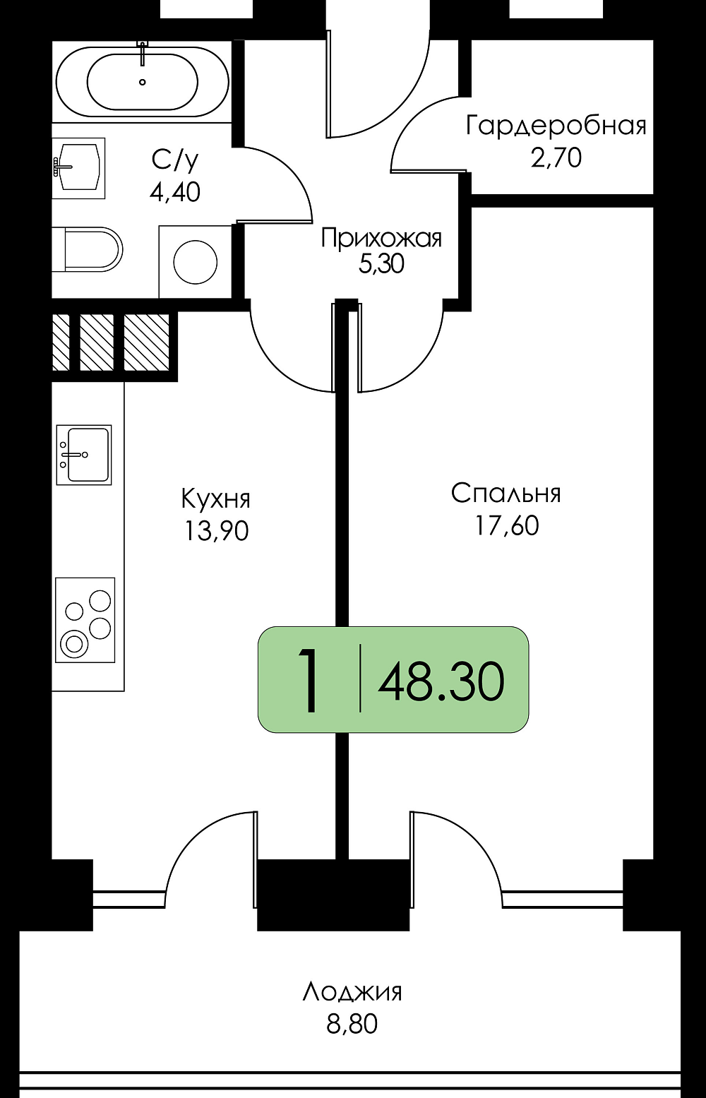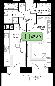 Однокомнатная квартира №28 c черновой отделкой, Корпус дом №5, Секция 1