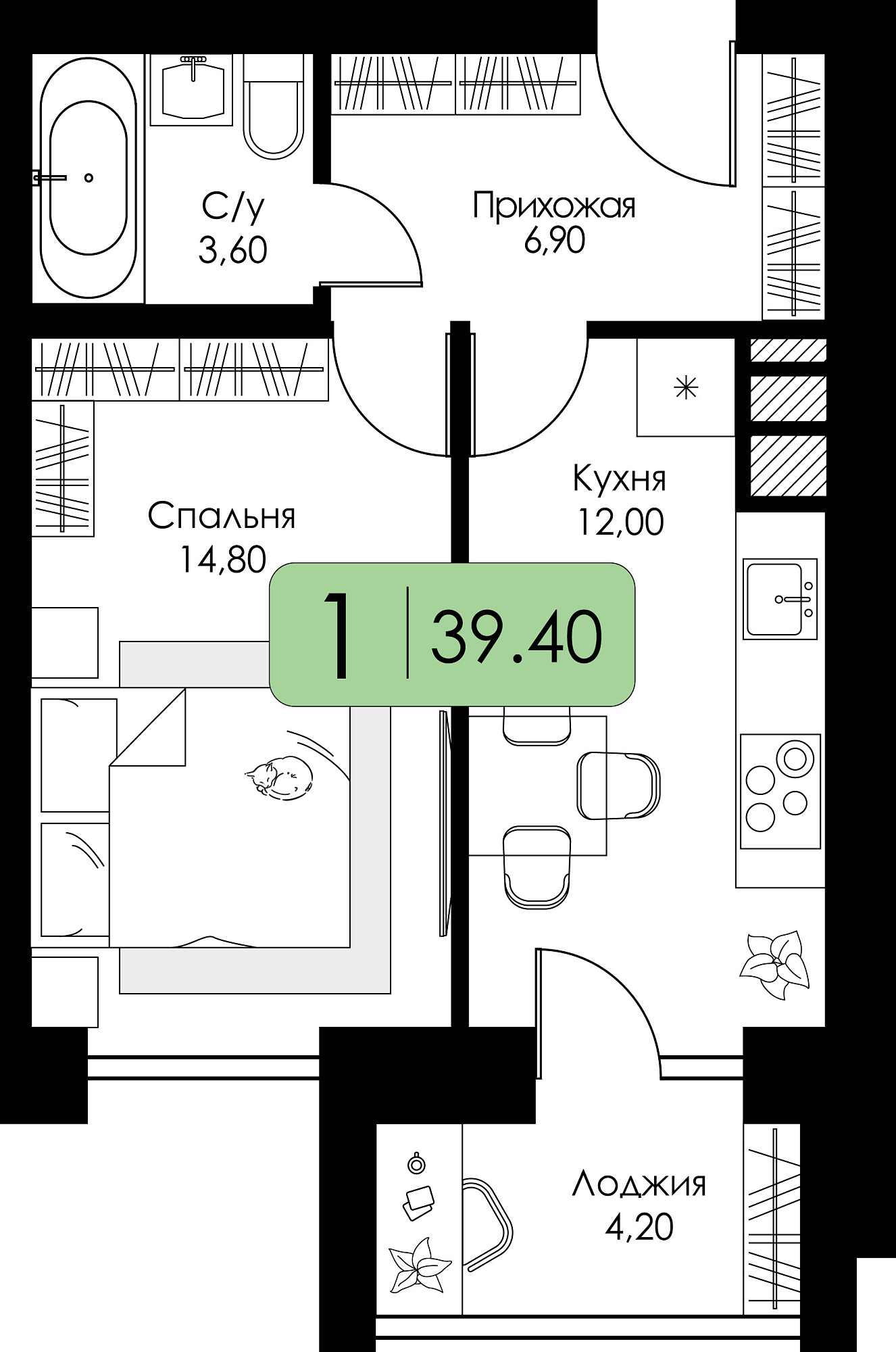 39.4м2