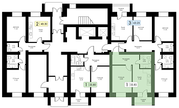 Однокомнатная квартира №46 с предчистовой отделкой, Корпус дом №10, Секция 1