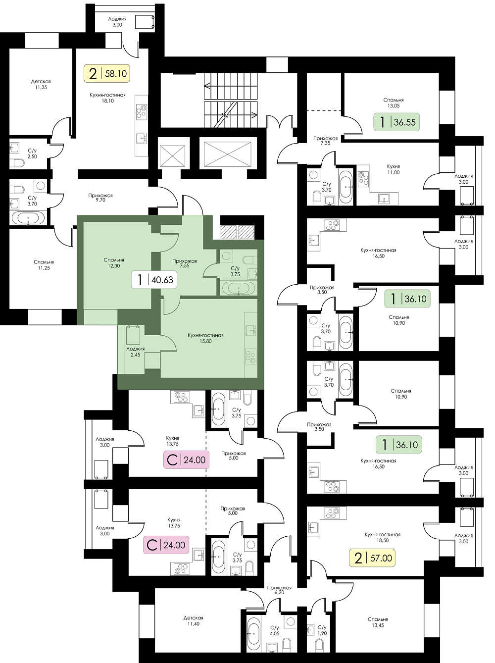 Однокомнатная квартира №104 с чистовой отделкой, Корпус дом №10, Секция 2