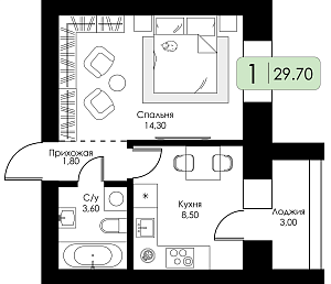 Однокомнатная квартира №163 с чистовой отделкой, Корпус дом №10, Секция 3